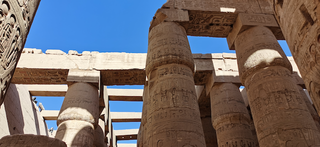 1674年,一名叫Nicolas Boileau-Despréaux的法国诗人把罗马时代的一篇用希腊文写就的美学论文翻译成了法语,自此sublime这个词在历史中开始出现。原本用来形容对艺术产生的一种情感,这个词经由之后多位包括伯克、康德、尼采在内的多名哲学家及文学家的引用与探讨后变得非常有深度,可以表达强烈的、超出意识控制的对于自然或艺术的敬畏与欣快感。站在卡纳克神庙巨大密集的石柱丛林间,我的感受只能用这个词描述。难以想象在这座神庙最辉煌的全盛时期,一场阿蒙神的祭祀庆典会是多么宏大的景象。在脑海中构建出穹顶与道路,断裂的方尖碑重新耸立,椰枣树和棕榈树继续旺盛生长,人在建筑前感到渺小无力,声音在空旷房间中无尽回响,光线逐渐变得阴暗,大量的石柱开始占满周围的空间,一种奇特的神秘压抑感袭来。一百三十四棵石柱甚至触发了我的引力感受器,它们巨大质量的吸引与撕扯令我难以呼吸。覆盖到每个局部的精美雕刻壁画,无不提醒着人们法老时代的精湛工艺与超凡的组织动员能力。大量的能工巧匠就如同成群的工蚁一样,在出产自各地的岩石上用简单的工具一点点的凿着,凿出古埃及的整个精神世界和神庙系统,也算是大自然另一种形式的鬼斧神工。在当时的社会条件下,所有超出温饱线的生产力都被投入了神庙系统,几乎所有人生命的唯一意义就是精神世界的具象构建。生产力的解放并不代表人生就存在了更高级的意义。相比于今天更难被定义的人生目标,五花八门的想法,无处不在的迷惘,我觉得古人这种纯粹的、局限的追求反而更简单,更高效,更幸福–如果人类存在的意义本身就难以定论,那何不让事情简单一些呢?