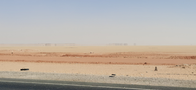 在卢克索的最后一天,清晨从热气球鼓风机巨大的轰鸣声和远景中的哈布神庙徐徐拉开帷幕。坐车前往赫加达的途中,丹达拉神庙再次用它的宏大冲击了我们。这座神庙保存完好,但是游客非常稀少,是藏在基纳省的一颗彩蛋。进入高速后,路上几乎没有车,只是偶尔驶过几辆缓慢爬坡的重型货车,它们的集装箱和车身下侧都挂满了色彩斑斓的各式流苏,有点像”Guerrilla-Stricken”的编织涂鸦,让我想到穿戴整齐踱步的大象。太阳的下降变得愈发显著,日光逐渐变黄,司机熟练的横跨在两个车道正中间,入弯吃弯心…… 一切都在情理之中。突然间,地貌猝不及防地开始转变,平坦浅黄的细沙由起伏不断的丘陵取代。它们的表面布满沟壑,被刻蚀得如同刚被进行了爆破。这也显得非常合理:日暮降临,我们的车刚刚驶入红海省。